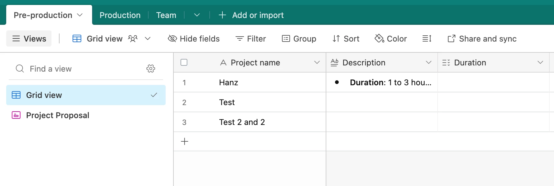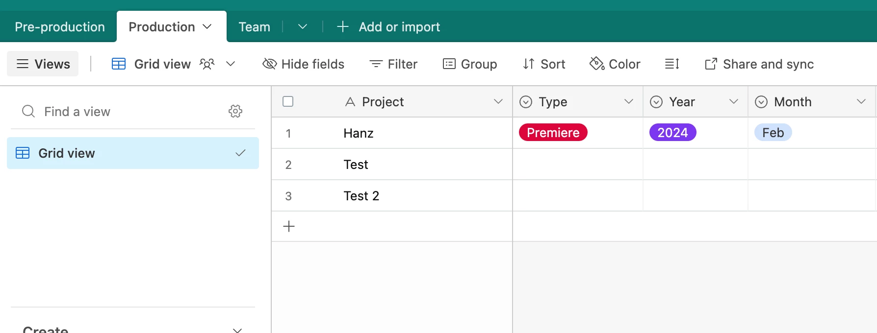 If this won't work for you, I would recommend using a linked record to link between production and pre-production. Then lookup the fields you need.