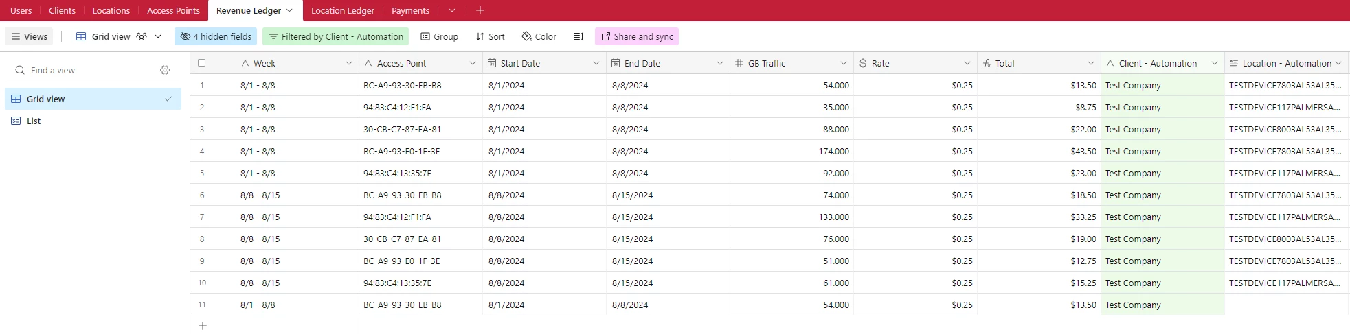 What I need is an automation that will match the Access Point in the Revenue table to the Access point table to the Access Point in the inventory table. If they match I need it to pull the client that owns the access point and add it to the record in the revenue table.