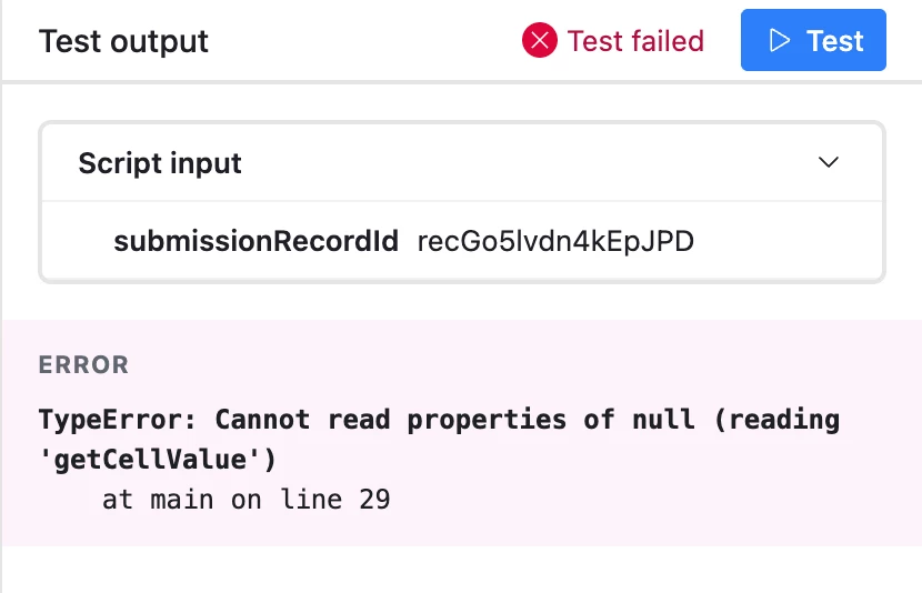 When I first started working on this automation script, Airtable presented a list of records to choose as the input for running tests. That was all fine.