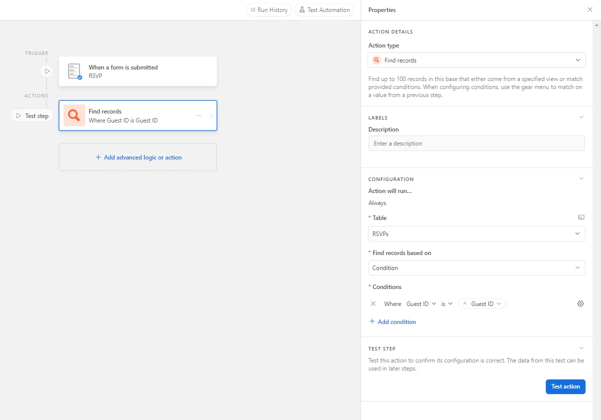 Hi! Using an automation designed to send and collect wedding rsvps via a form - I customised the automation to use it for our events company.