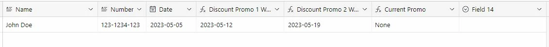 So, every new person (and date) that is added in Airtable is basically a customer who availed our products. The idea is that they have 1 week to avail our promo 1, and 2 weeks to avail our promo 2 and 3 weeks for promo 3 and lastly 4 weeks/1 month for our promo 4.