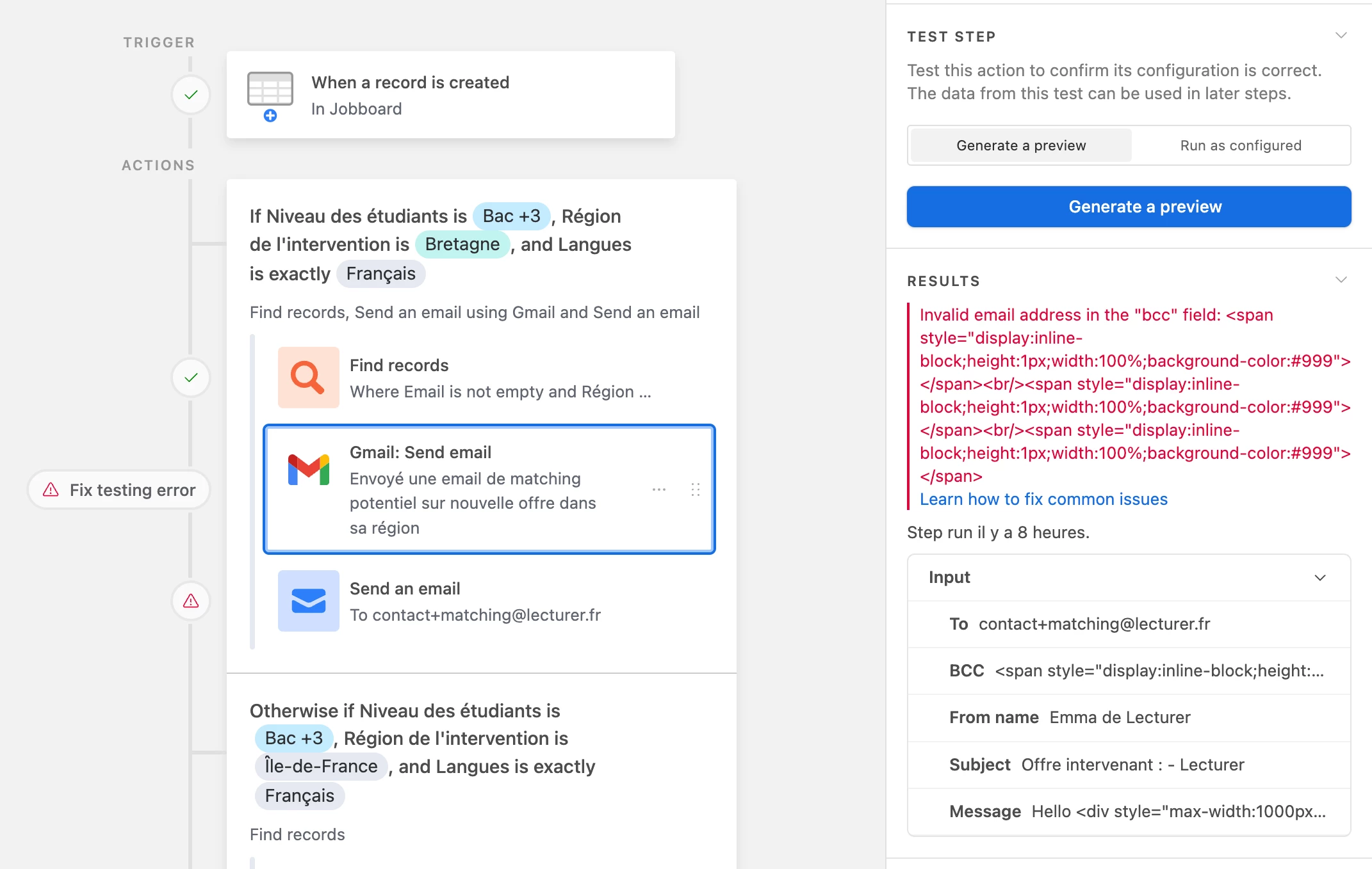 I'm trying to automate sending an individualized email to people in my database who match criteria.