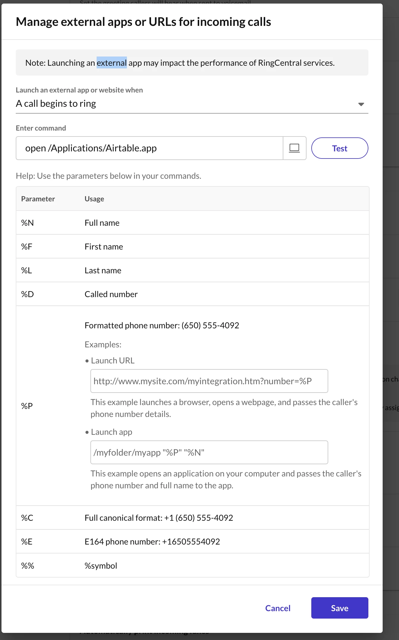 Is there anyway to launch an airtable record when someone calls through RingCentral