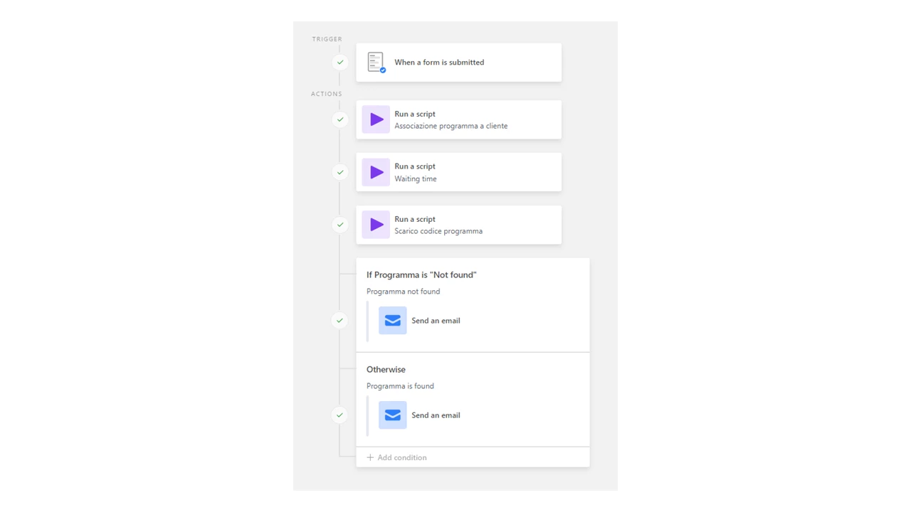 After this action I set up a script that wait 20 sec. in order to wait the update of the data in the record and then I put a condition that:
