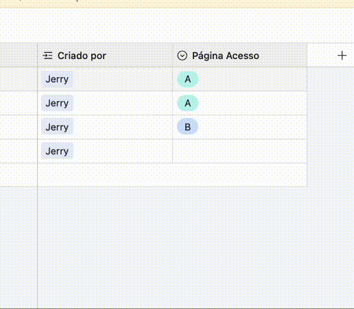 Field that identifies the originating page: Página Acesso