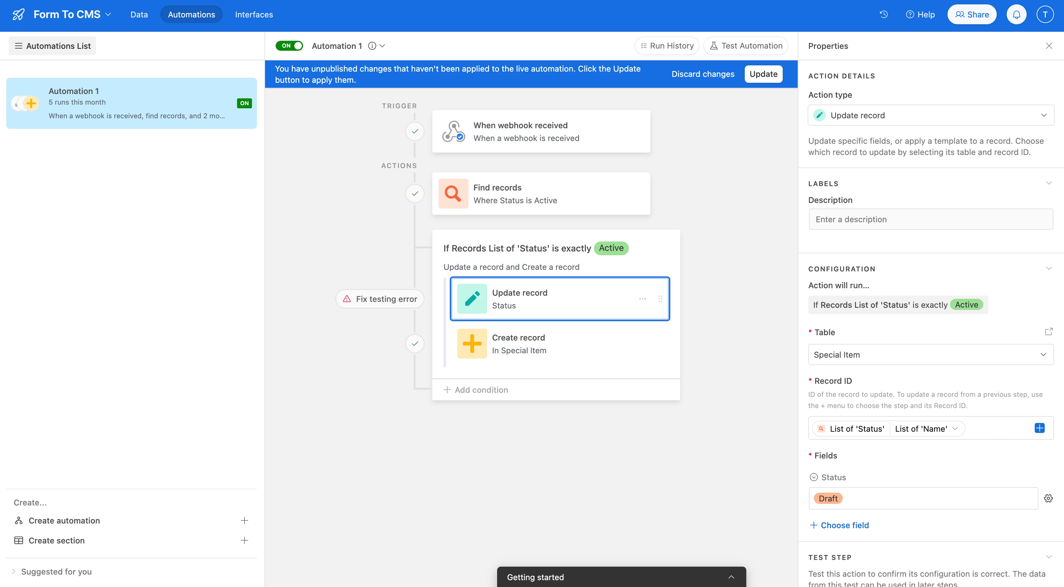 Hey, I am having trouble with automating it where when a new 'special item' is created it will deactivate the previous 'special item' in the list and have the new one be active, I keep having errors with the update record.