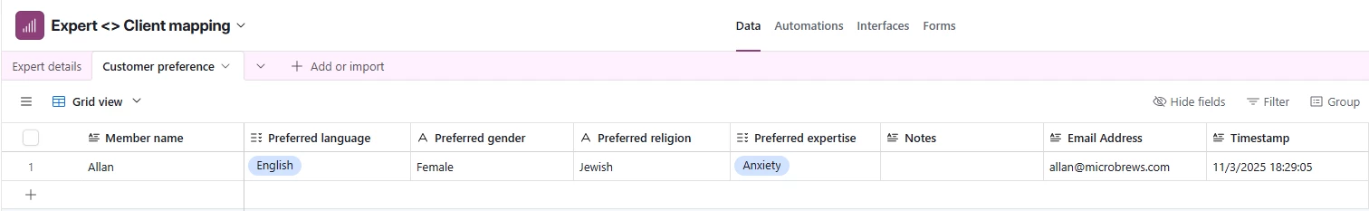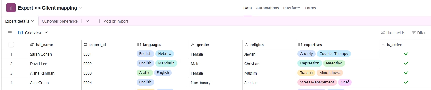 I am trying to build an automation where multiple choice preferences of a customer under multiple columns need to be matched with another table where these preferences are mapped to an expert. I am unable to find the output of the right mapping. Can someone help with a workflow direction ?