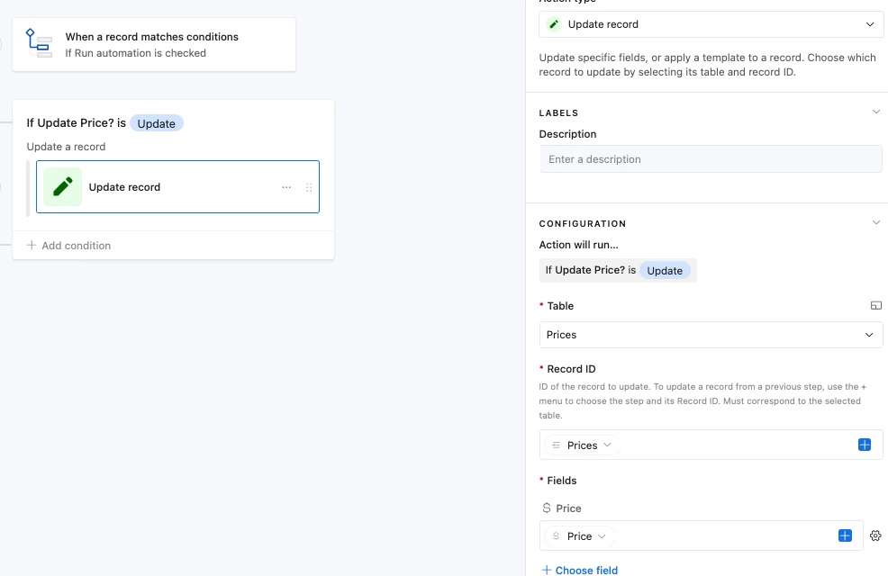 Si le prix est inférieur, j’aimerais que la base Prix soit mise à jour avec le nouveau prix. Sinon, un email m’est envoyé (l’automatisation pour cette dernière étape est ok).