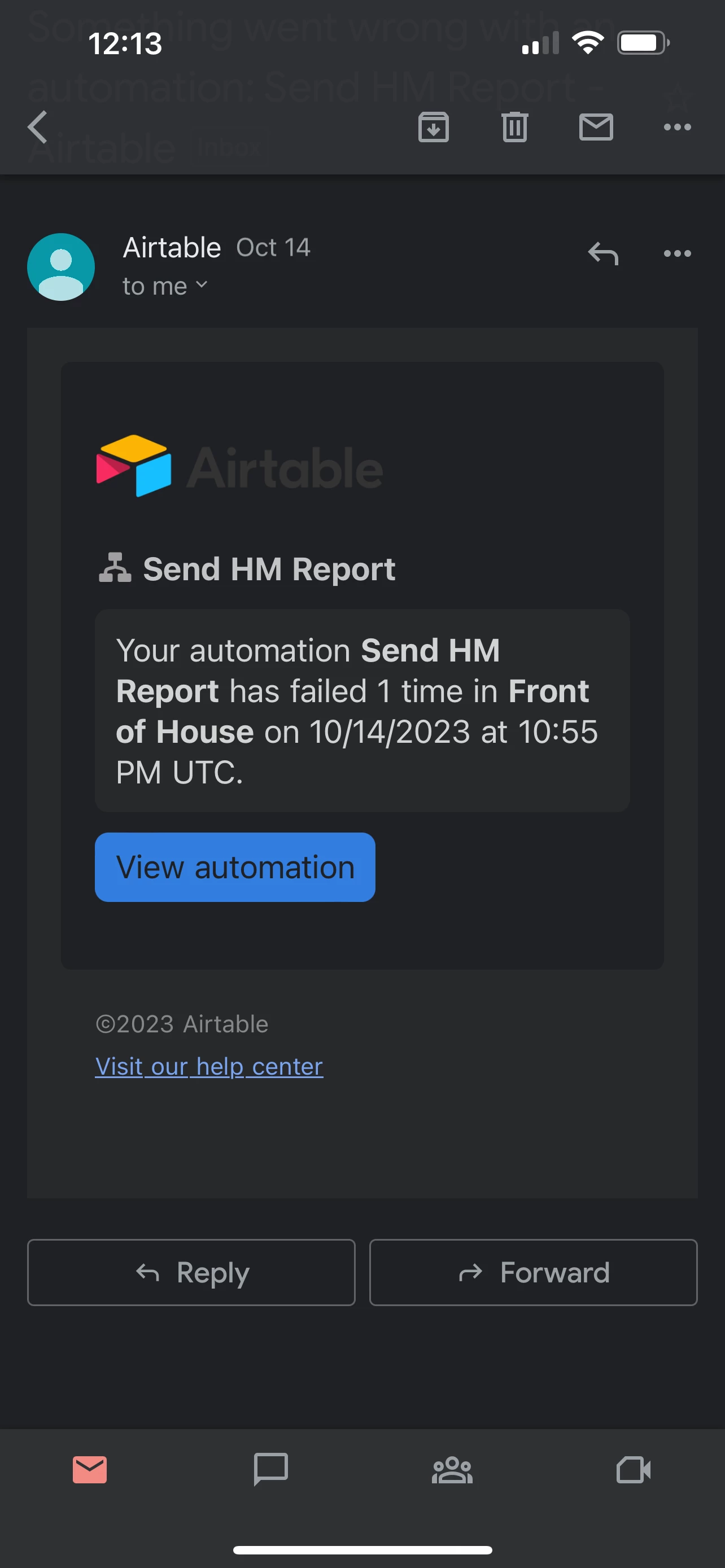 My email automation that I use to send out reports has failed 3 times in a row and does not give me any information besides it has "failed". I went to the automation itself, tested it, and it said everything was fine. So I am not sure what the issue is. I am attaching a photo of the email I keep receiving. Hopefully I can get this figured out soon. (This is also just the normal email automation, not the gmail specific one.)