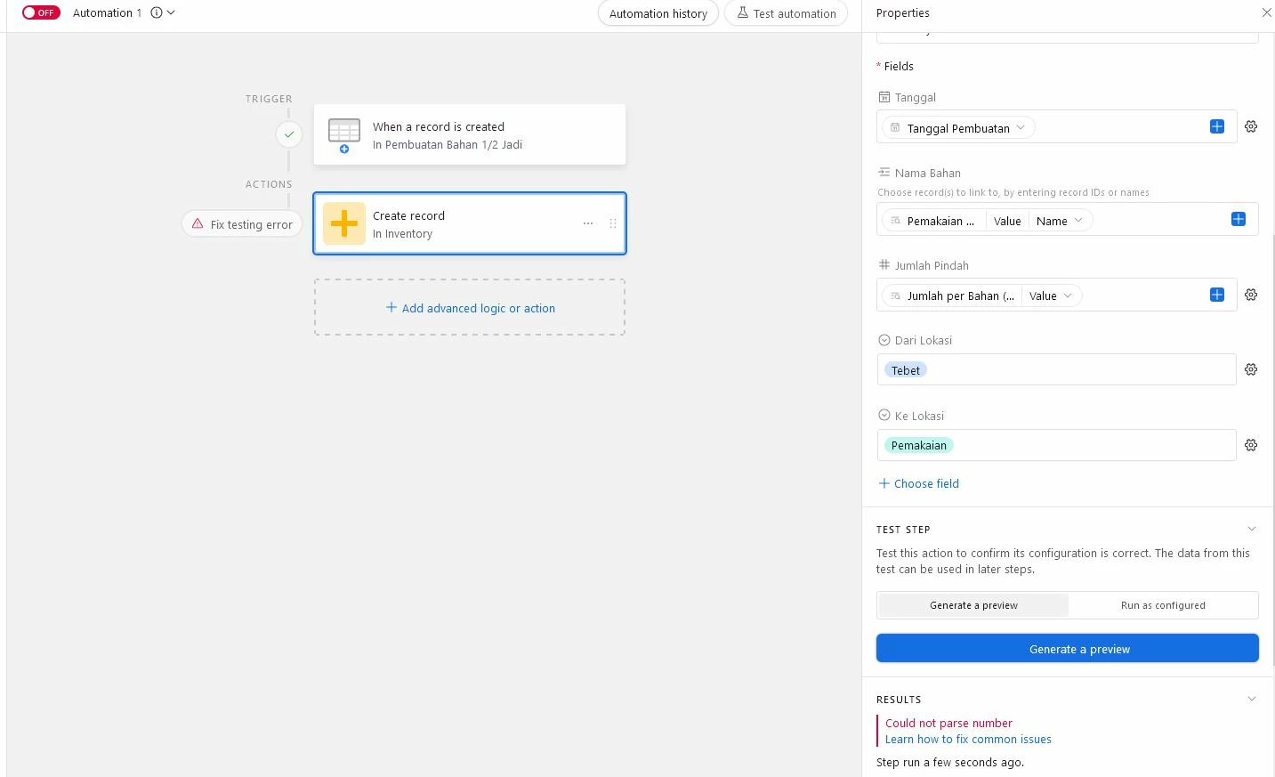 so i already make the table but when running the automation to update the inventory table it seems cannot go through due to multiple values of the ingredients.
