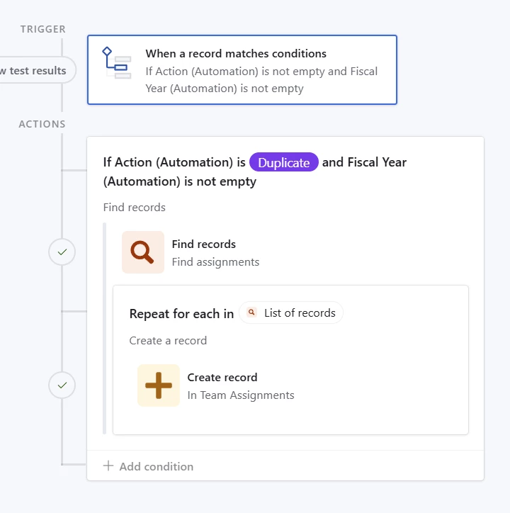 If it does execute, I find a bunch of records. And then I run a nested Repeat for each using the list from the find records step.