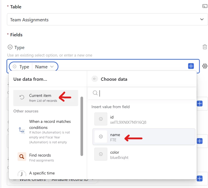 In the repeat loop, I am going to create a new record. But...none of the data from teh current item is getting passed into the create records step.