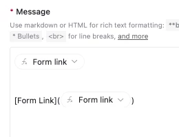 I wanted to set up an automation that would send an email based on a trigger field to these applicants with their pre-filled form and confirm their info. I tested it out with a fake applicant record but the link in the email is not showing any of the pre-filled fields when you copy and paste (for some reason its also not showing the link fully underlined). I’ve attached a photo of what the pre-filled formula looks like in the test email.
