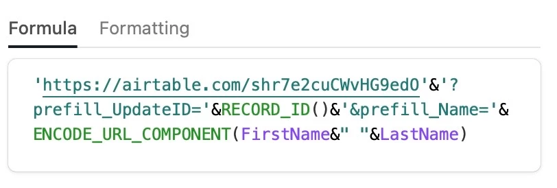 Hi! I am trying to send a prefilled form to users via automated email so they would be able to update their data. When I try to add the formula field where I created the unique URL's into the email they break after the shared form and a few other places. Below are photos of the formula and the output I am getting from the email preview.