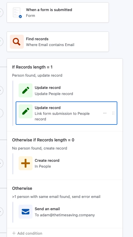 - Same as #2 above, creating an automation to send an email to a team member alerting them that a dup exists and to merge the data.
