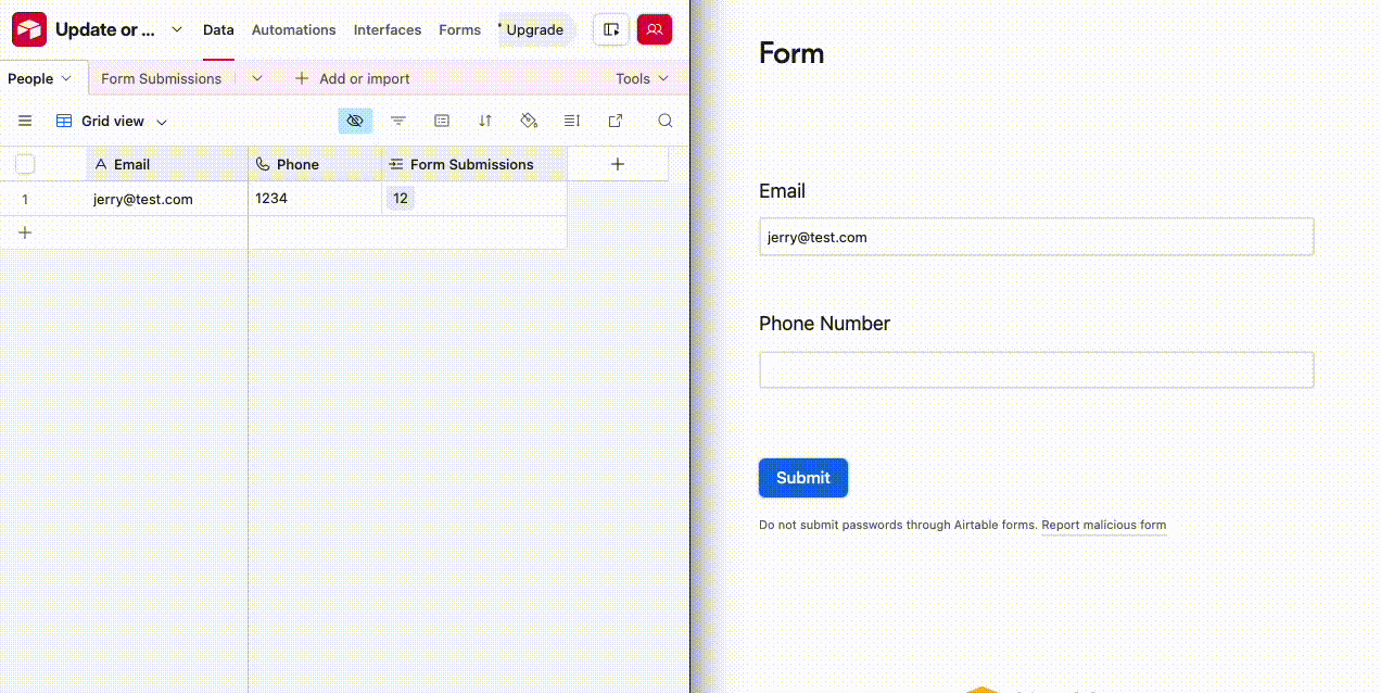 - Is there a way I can have a script or automation check existing records for matching ‘Project Name’, ‘Customer Name’, and/or ‘Customer Email’ and if any of these exist already, allow them to update/edit the record. Or, if it does not exist, they can create a new one.
