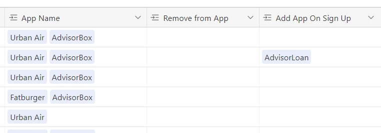 "App Name" is a linked record field. "Add App On Sign Up" is another linked record field. When a value is inserted in "Add App On Sign Up", I need this value to be inserted in "App Name" (inserted, meaning adding a value, not replacing a value to "App Name".