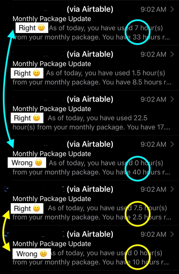 The attached multipleEmails picture tries to tell the story of what my client sent me using yellow and blue arrows. The emailExample picture shows a redacted view of the automation run history: each client has only one email and that one email shows the correct info for the client.