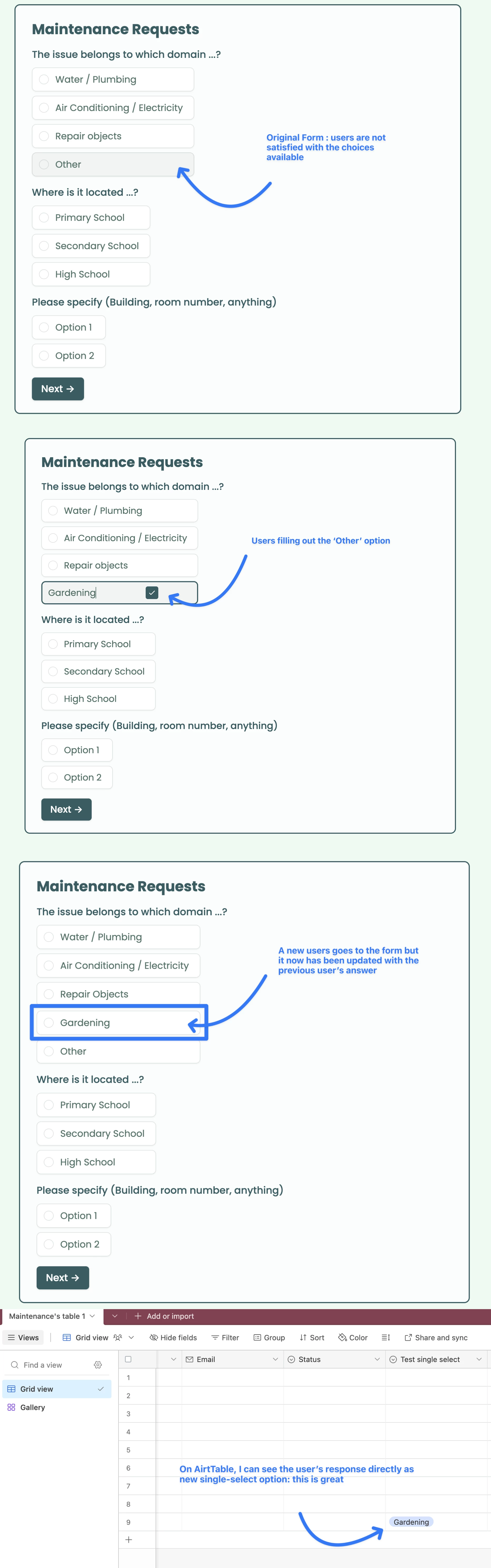 I would like to avoid new fields being created on my form while still getting the ‘other’ options from my users inside AirTable.