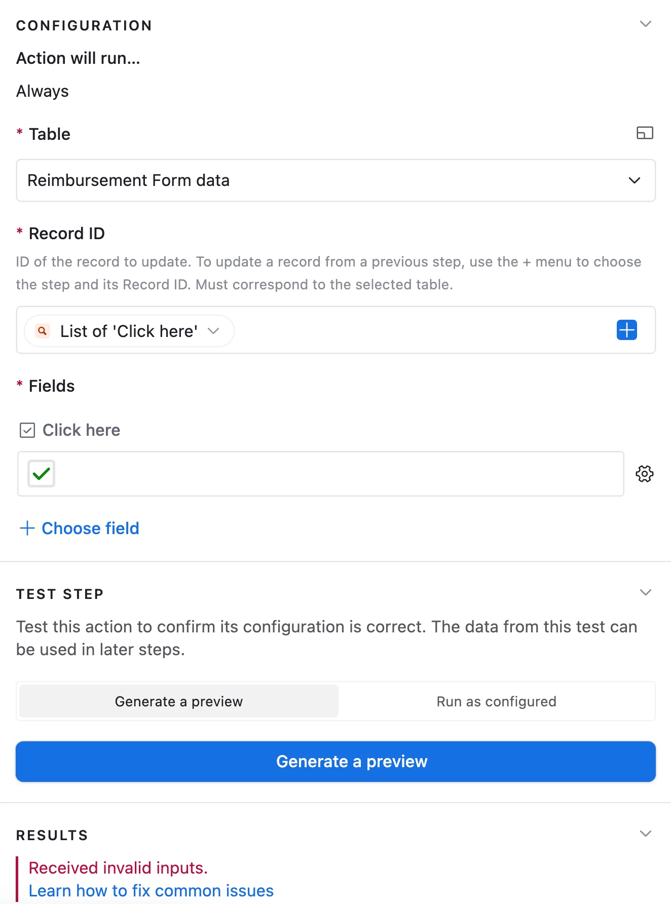 - sounds easy, but, I keep getting an error that says “Received invalid inputs.”