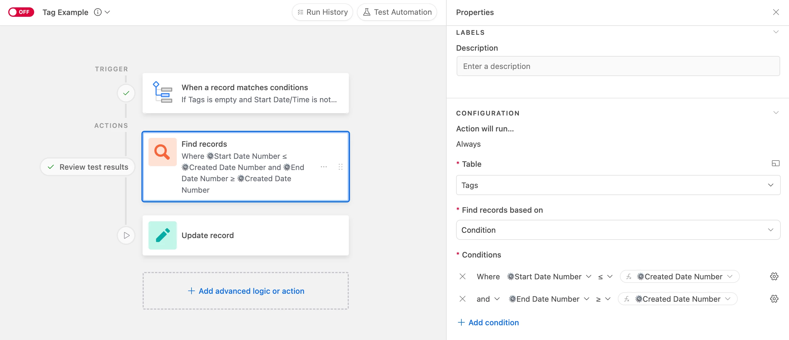 I'd like to create an automation to "tag" each record based on the date it was created. I have a table in the same base (let's call it Table 2) with "Start Date" and "End Date" fields, plus a tag for that date range. So when the new record is created, I'm trying to figure how to take the date/time it was created in Table 1, compare against Table 2, then add the correct tag in Table 1. I'm struggling to figure this out. Any help would be great appreciated.