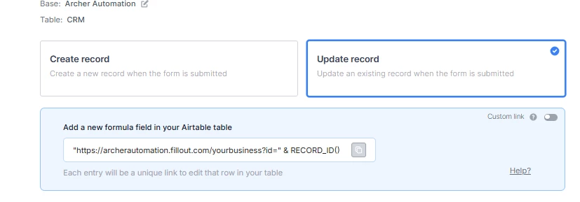 The second quiz is set to update a record, but in the results, it creates a new record.