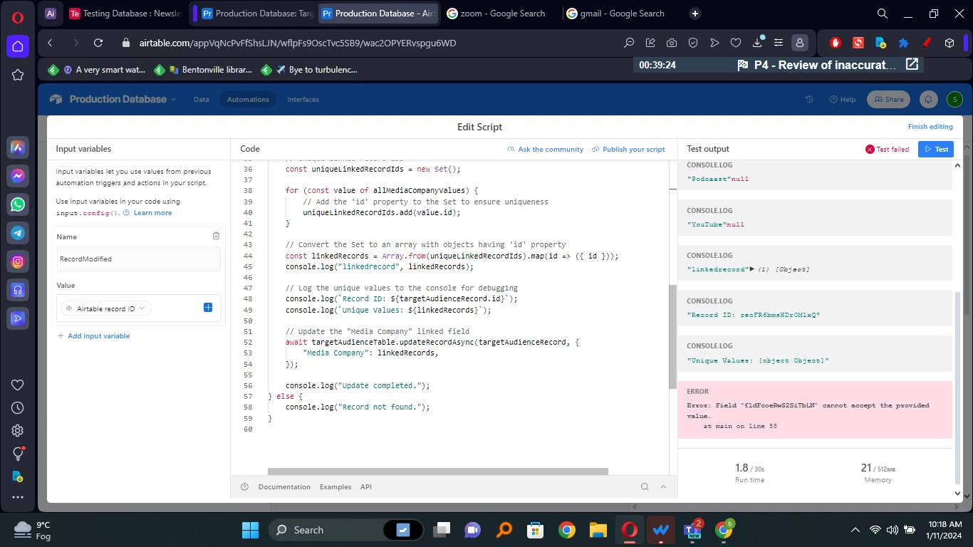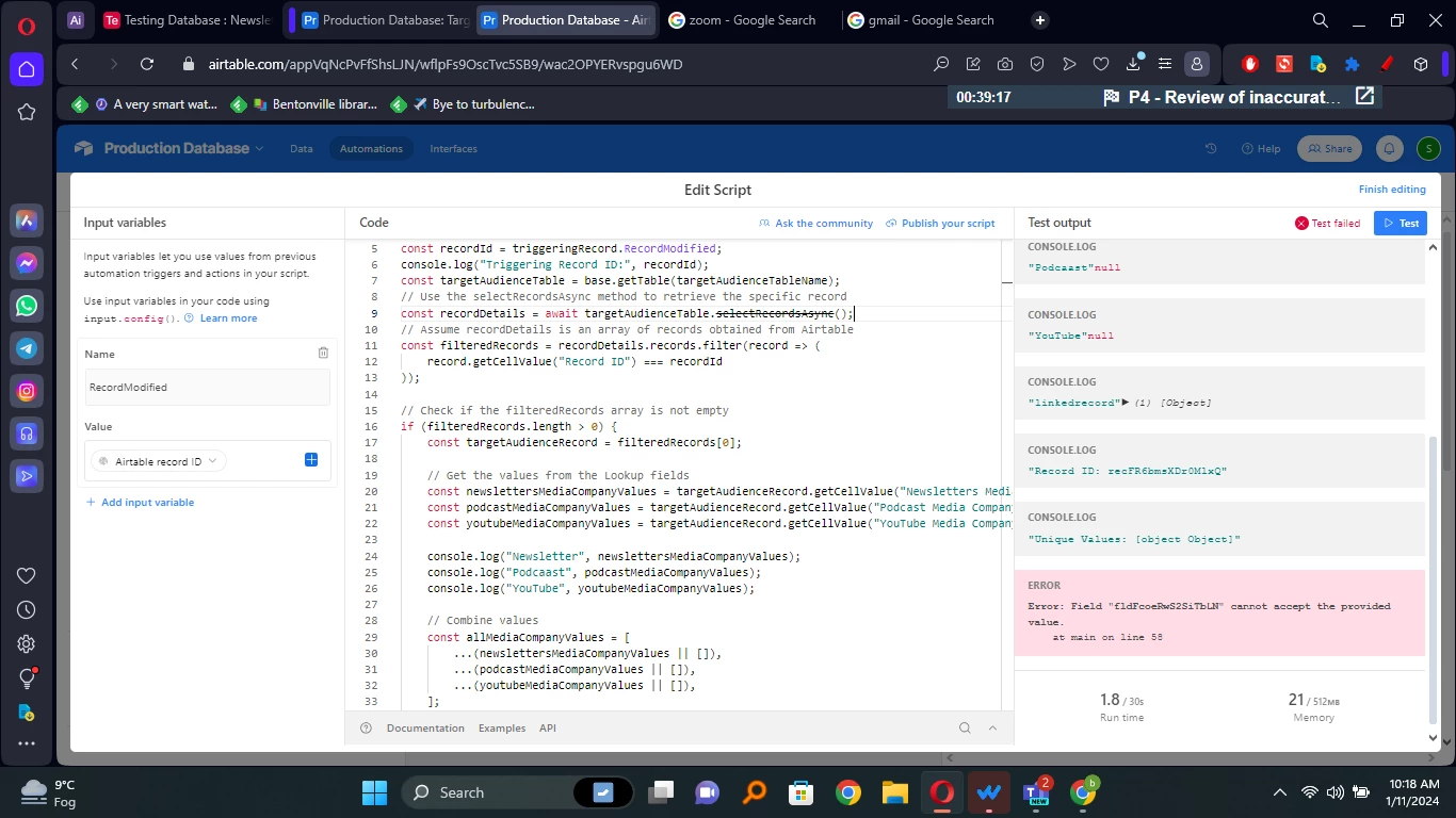 Error: Field "fldFcoeRwS2SiTbLN" cannot accept the provided value.