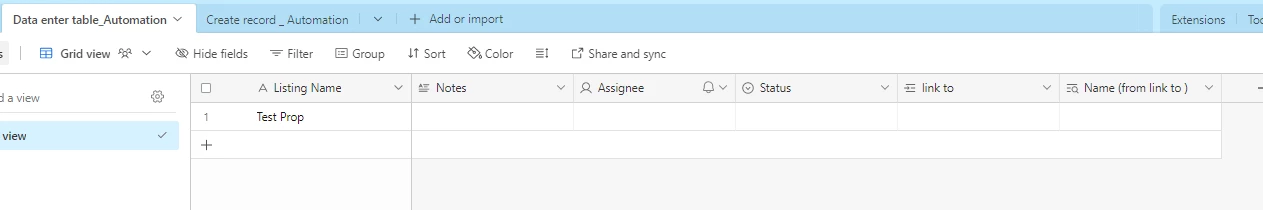 We set an automation, but when we enter the listing name in one table, that same listing should go to another table. But filed is creating in another table, but the data is coming to that table.