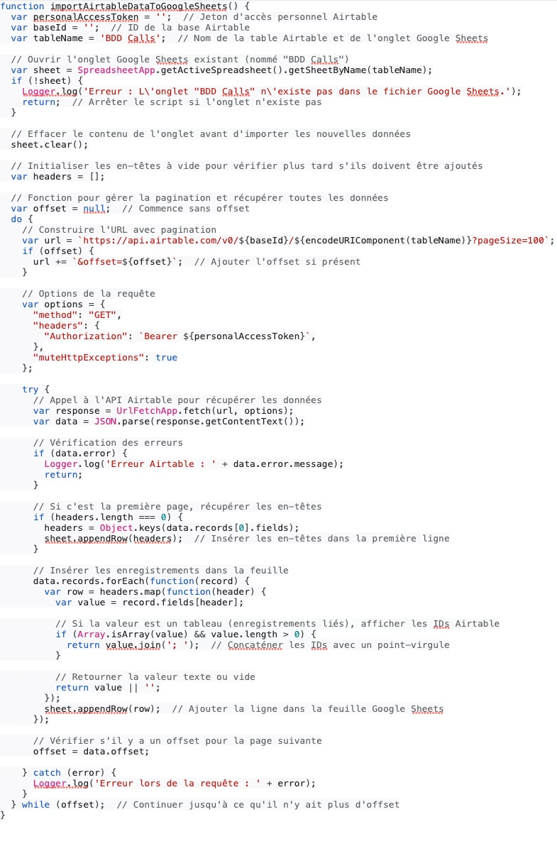 I wrote the following code to do that, which works, but i have an issue with the linked recors. he gives me the airtable code of the records, not what i see in the cell on airtable. Any idea how i can manage that?