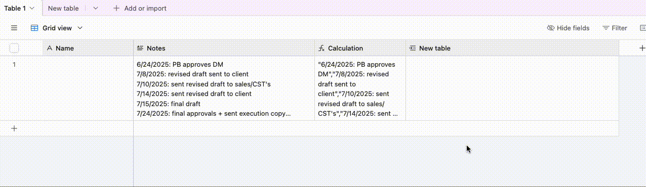 Hi! I’ve tried a few different ways of doing this and can’t seem to figure it out. I’m importing some data into a new base and there’s a field that has update notes on different lines all formatted the same. I’d love to figure out an automation to add each line to a linked table as separate updates connected to the parent field. Has anyone attempted this before?