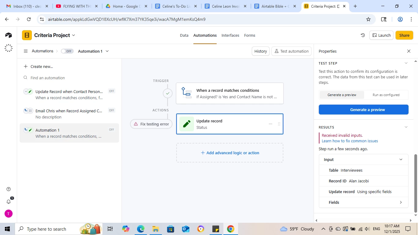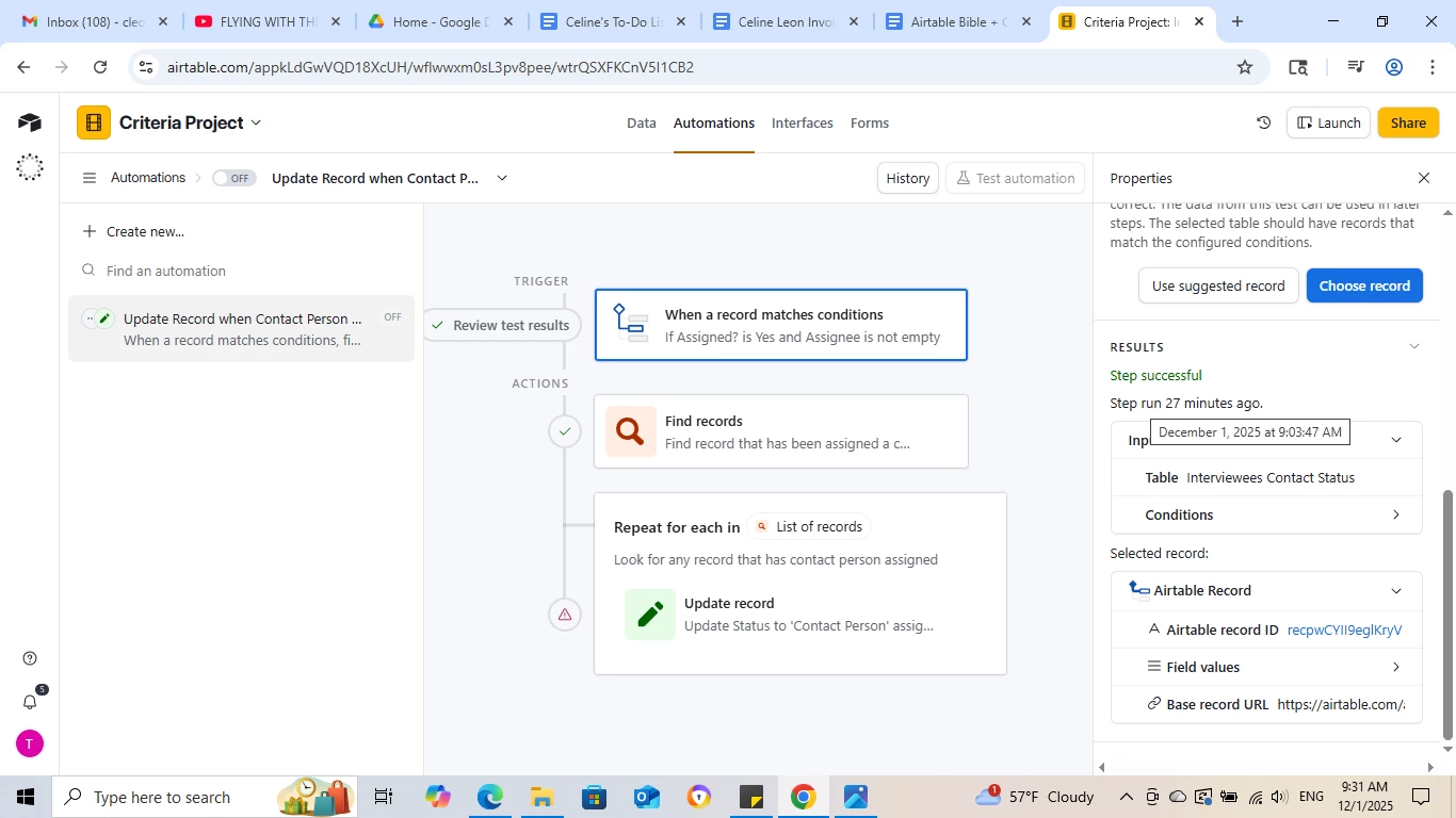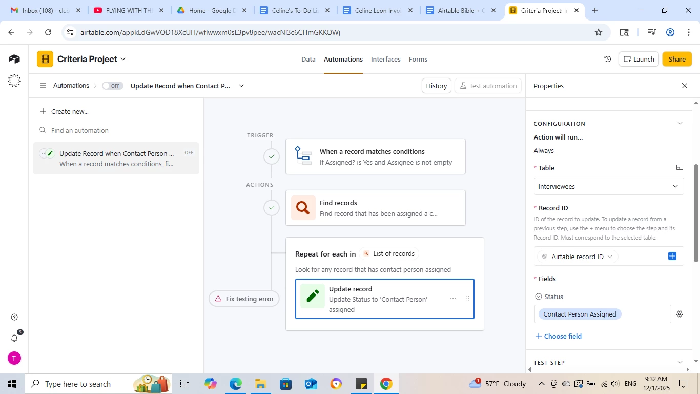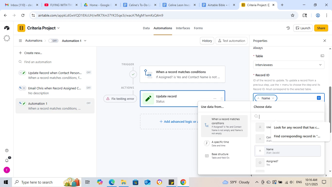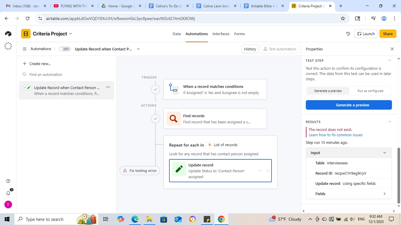 This is the automation I’ve set up so far but no matter what I do, I keep getting the “Record does not exist” error.
