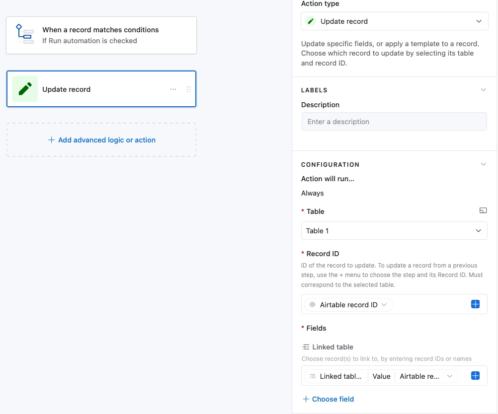 I would like to populate a linked filed with the lookup field coming from different table. How do I automate this
