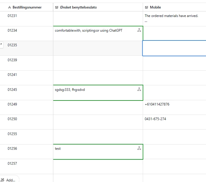 Hm yeah, you could try putting the full text of the email into a long text field, then using formula fields to extract the order details either with the REGEX formulas or lots of SUBSTITUTES. This works but would be pretty clunky, you’d need to have one field per order in the second email, which is fine if there are like 5 maximum or something, but if it goes to dozens this is pretty tedious