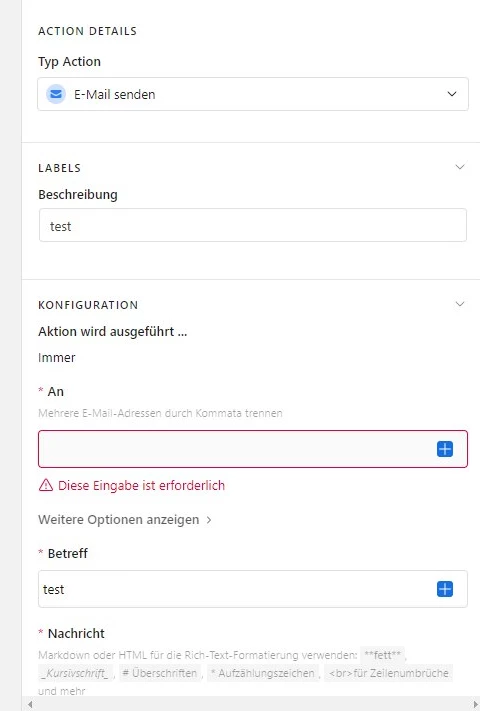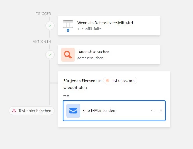 I want to create an automation that sends a mail to ALL mail addresses contained in table 2 when a data record is added to table 1.