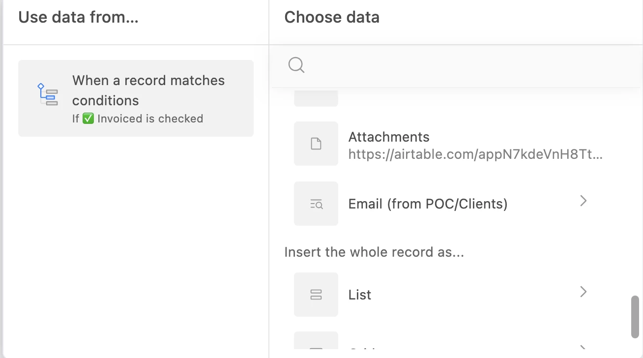 I have a 'Client' table linking to another table that holds information about Event Labor. From the Event Labor table, I am trying to send an automated email to the client (email address linked from its own table.) When creating the action, the 'Email (from Client table)' is an option, and then I have the choice Linked Record ID or Value. I assumed to use Value but neither choice is working. Any solutions?