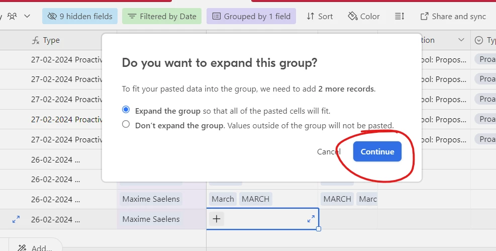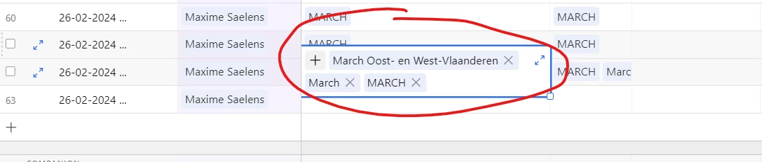 I can copy paste multiple company names into an empty field of 'companies' in the interactions table.