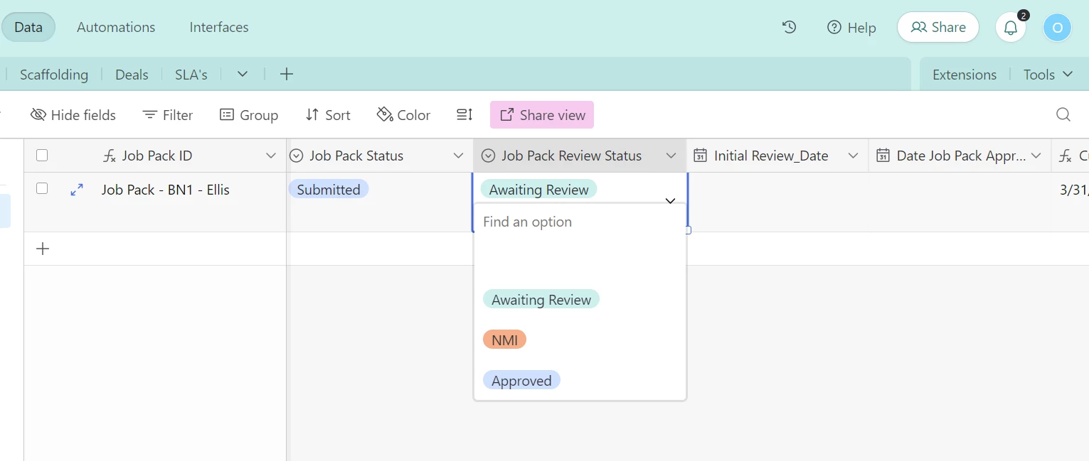 I'm in the process of creating a base which is to be used by our company and an external company to share information and update the status of job packs for solar installations.