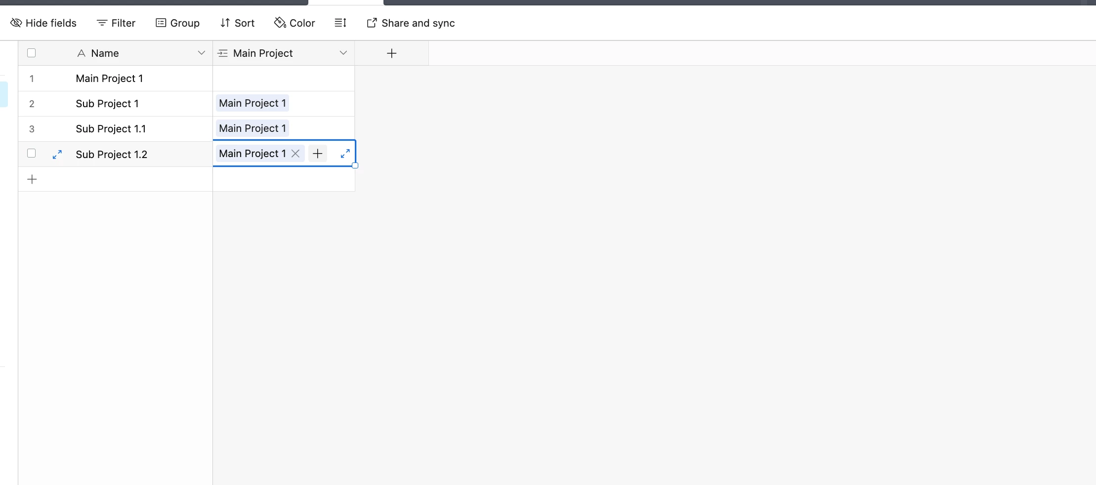 I have Projects and Subprojects. The latter being the child. So there are a few Subprojects for every Project. On the other hand, I have Project managers.