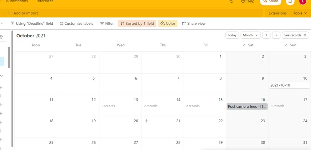 Hi, I am new to Airtable. Just learning to use the calendar view. Instead of being able to view the contents of relevant records in the calendar, I can only see the numbers of relevant records in the calendar and I need to click each date to see the details of the records.