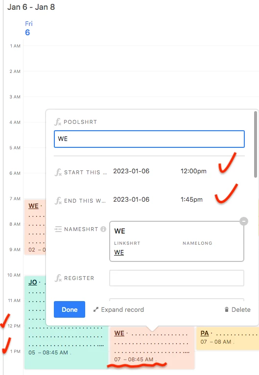 Only the bottom of the time slot shows wrong time zone. This is not my field, it seems default field shown by Airtable and I can't disable it. Not sure where comes from.