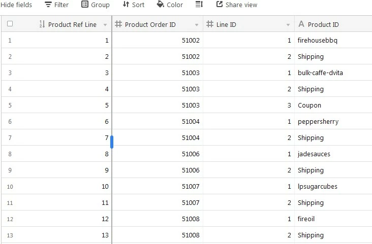 If customer bought three items, there would be three rows, with the same invoice number on each row and one item per row in the Item field.