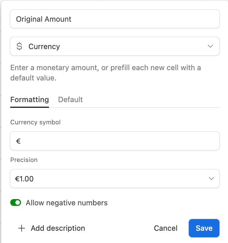 0,97 €, but when we import it, Airtable changes it to; €97.00