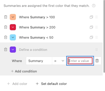 Is there a way to define a condition that when the value is equal to infinity is become purple?