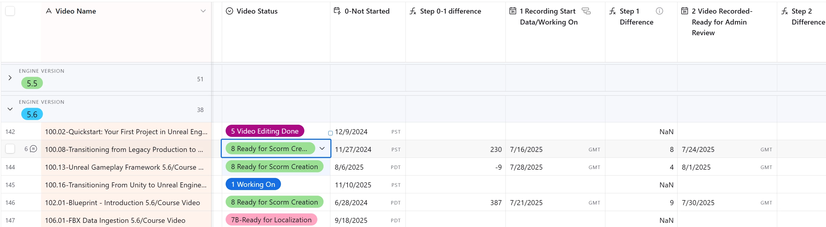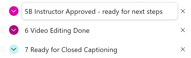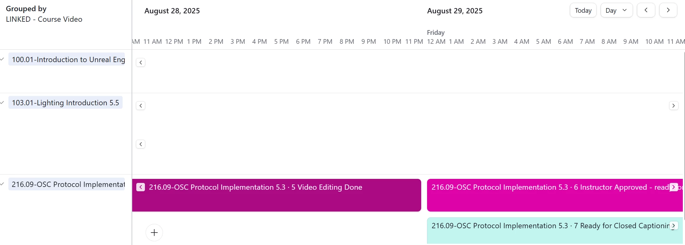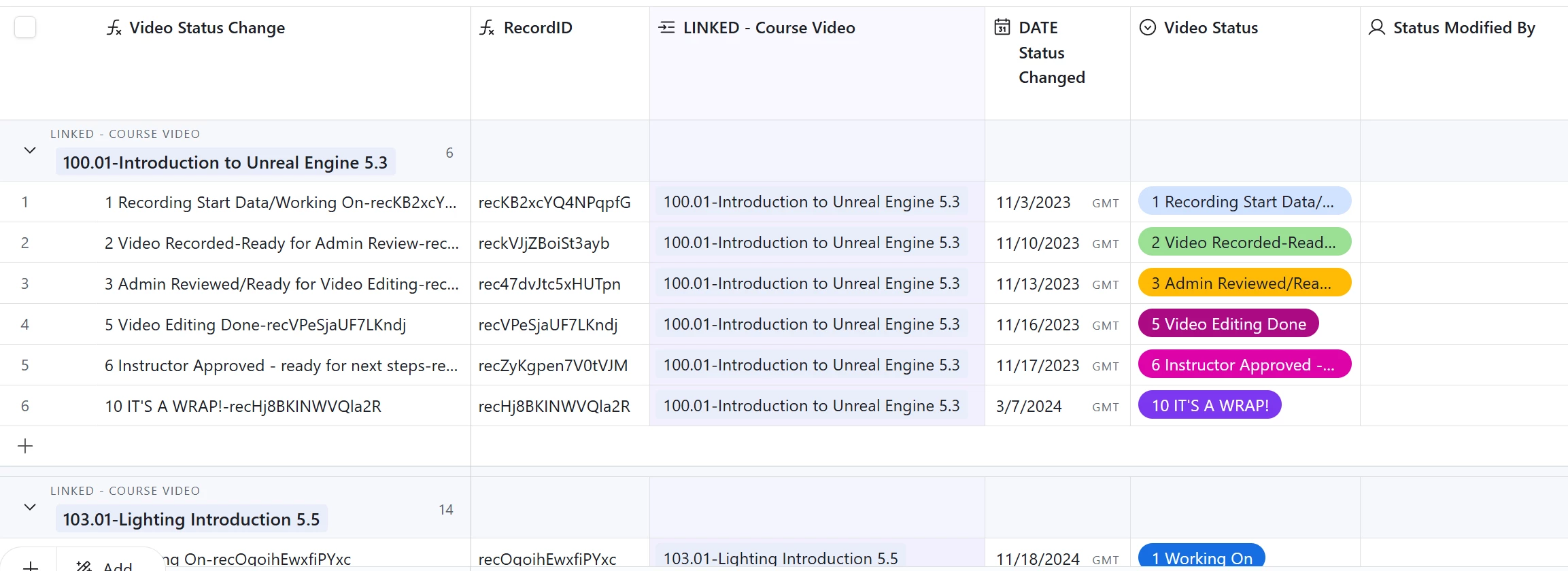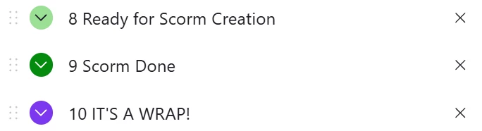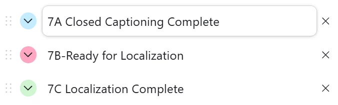 Am I missing any dates, or should my order take into consideration for the errors and have multiple, video editing done dates, and statuses? Just curious. My idea is the gant/timeline views would show the dependencies, predecessors, and successors, and each would be colored based upon their status color.
