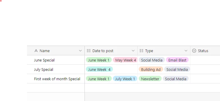 I am attempting to make a database for my social media. I am having trouble with the best way to organize it. I struggle with how I can put things in DATE order, We typically do Month and Week # so we don't have to change the date each year, but then it doesn't go in month order.