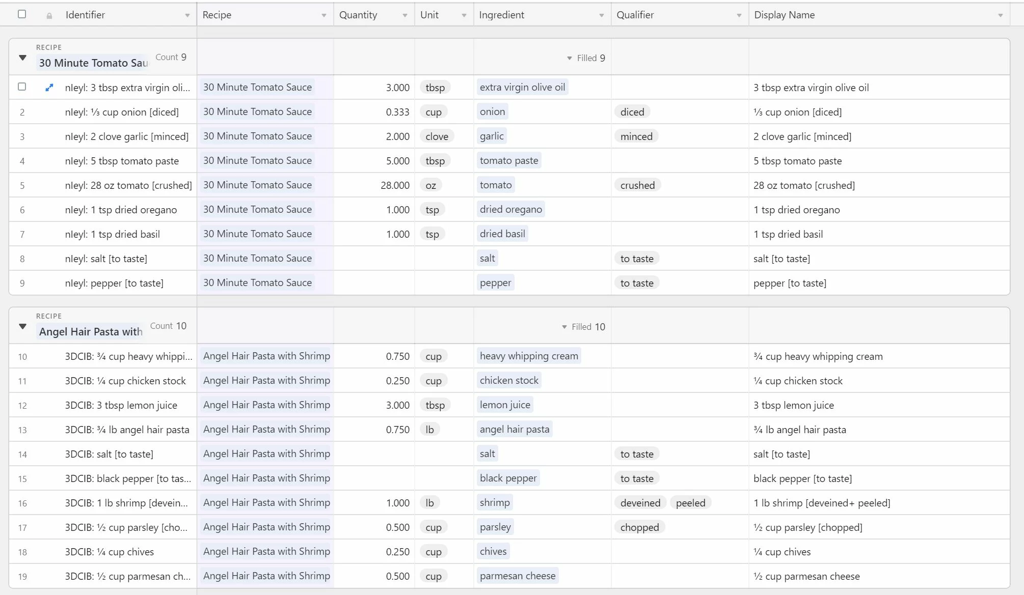 So I have a table for ingredients and a table for recipes but how I set the quantities. Like: