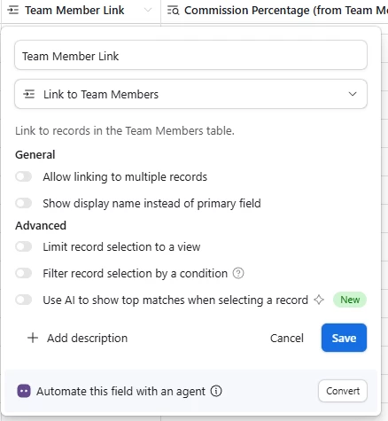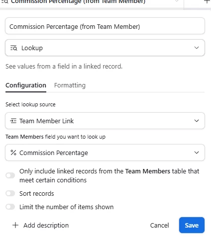 When I upload my commission file in CSV format, I want the Commissions Upload table to auto-populate the commission percentage by looking at the team members table’s percentage field and pulling it from there.