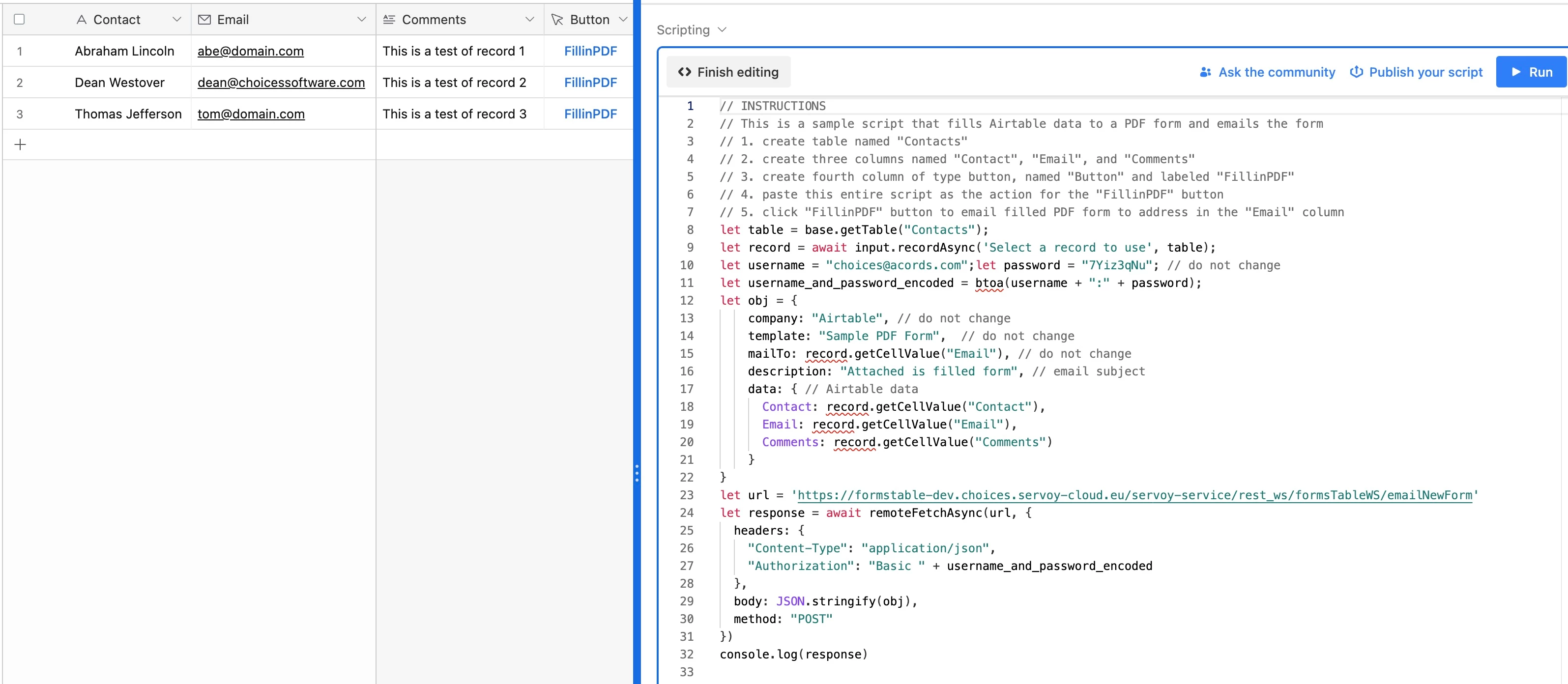 We are using airtable as a database for some of our raw materials. However, when we receive a raw material order we have to fill out this PDF document for compliance with regulations. I can add the form to a record as an attachment, but the form is not able to be filled out using this method.