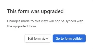 I'm getting a pop-up saying "This form was upgraded" when I edit one of my forms. I've tried both options it gives me, but I can't get the message to stop popping up. It's unclear what to do.