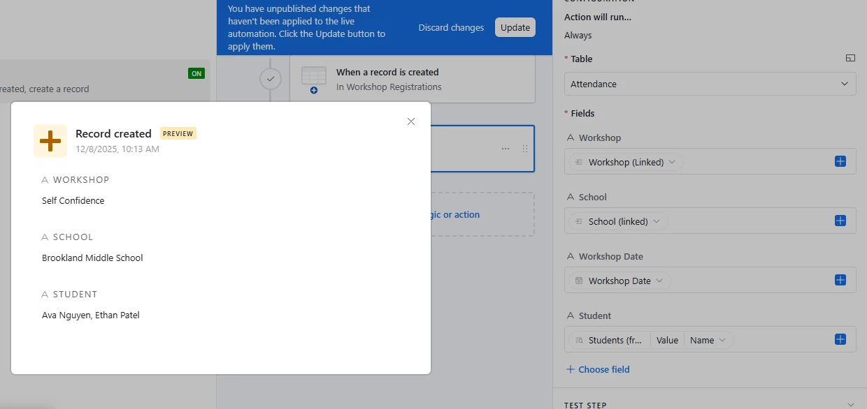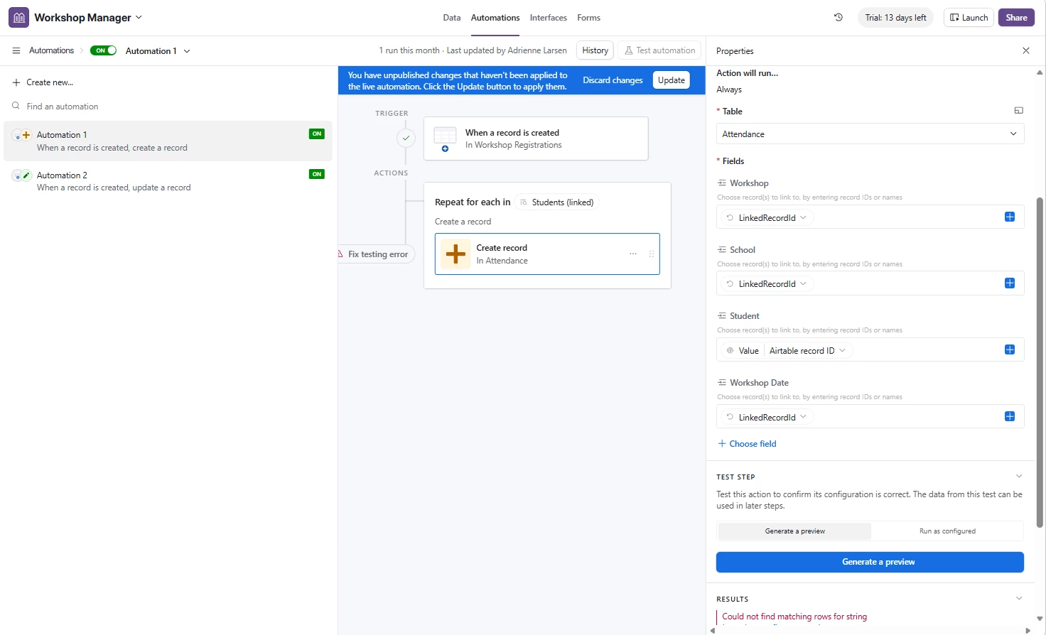 One has information about the workshops the business have signed up for.